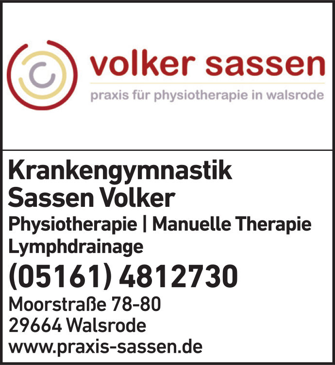 Die Adresse von Sassen Volker Praxis für Osteopathie lautet: Moorstr. 78-80, 29664 Walsrode