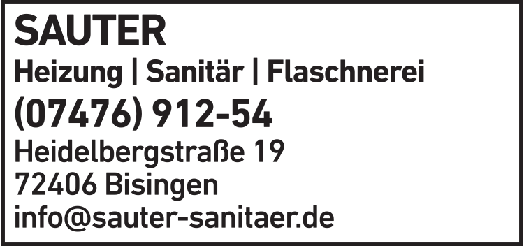 Die Adresse von Sauter Heizung lautet: Heidelbergstr. 19, 72406 Bisingen