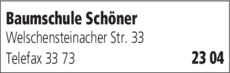 Die Adresse von Schöner Baumschule lautet: Welschensteinacher Str., 77790 Steinach