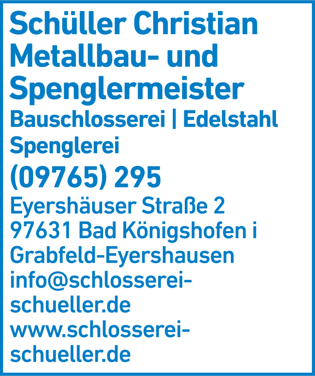 Schüller Christian Metallbau 09765 2 95 Bad Königshofen i.Grabfeld Eyershäuser Str. 2 97631 Eyershausen