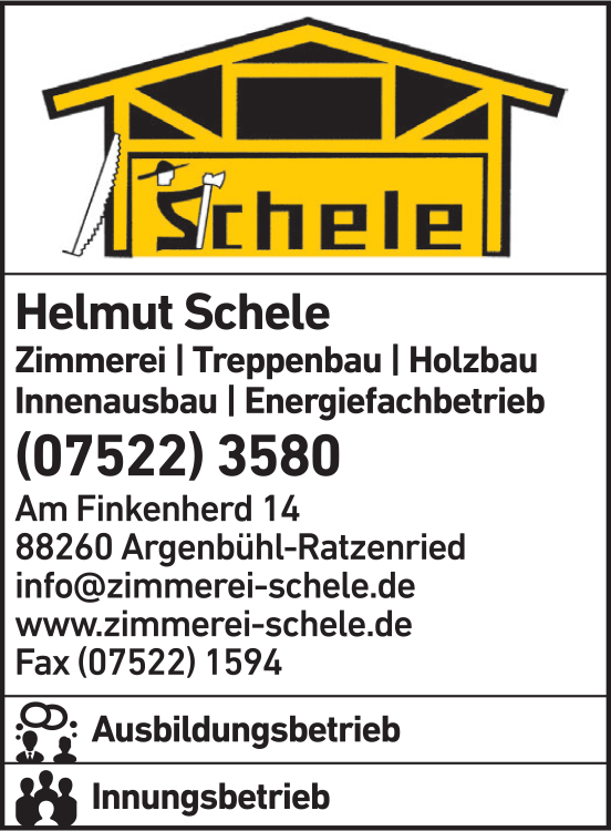 Schele Helmut Zimmerei 07522 35 80 Argenbühl-Ratzenried Am Finkenherd 14 88260 Ratzenried