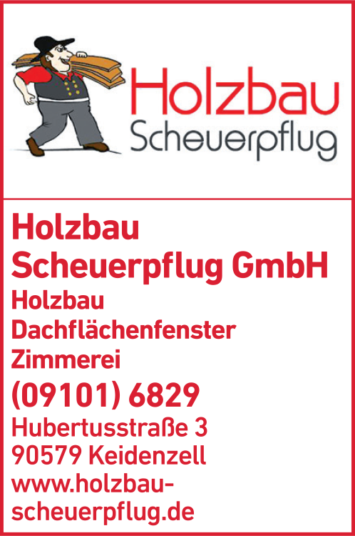 Die Adresse von Scheuerpflug Holzbau GmbH lautet: Hubertusstr. 3, 90579 Langenzenn