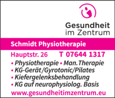 Schmidt Physiotherapie und Trainingstherapie bietet Krankengymnastik und Sportphysiotherapie in Kenzingen an. Die Therapeuten versuchen die individuellen Probleme der Patienten zu behandeln und nehmen eine ausführliche Erstuntersuchung vor. In der Physiotherapiepraxis von Gunda Schmidt in Kenzingen werden auch Kiefergelenksbehandlungen durchgeführt. Alle Mitarbeiter bilden sich kontinuierlich weiter, damit sie sich immer auf dem neusten Wissensstand befinden. Dazu gehört auch die Osteopathie, die ebenfalls angeboten wird. Zu den weiteren Leistungen gehört das Faszientraining oder Athletiktraining. Des Weiteren wird die manuelle Lymphdrainage oder Eisbehandlung angeboten. Hinzu kommt die Extensionsbehandlung und Traktionsbehandlung mit einem Schlingentisch.