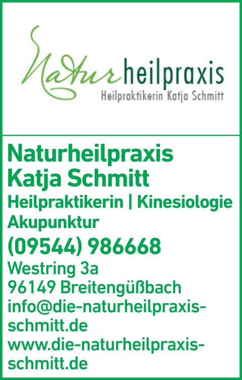 Schmitt Katja Heilpraktikerin 09544 98 66 68 Breitengüßbach Westring 3 a 96149
