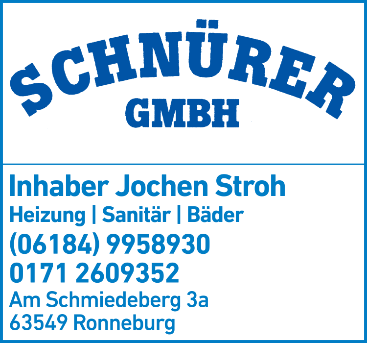 Die Adresse von Schnürer GmbH Heizung / Sanitär lautet: Am Schmiedeberg 3 a, 63549 Ronneburg
