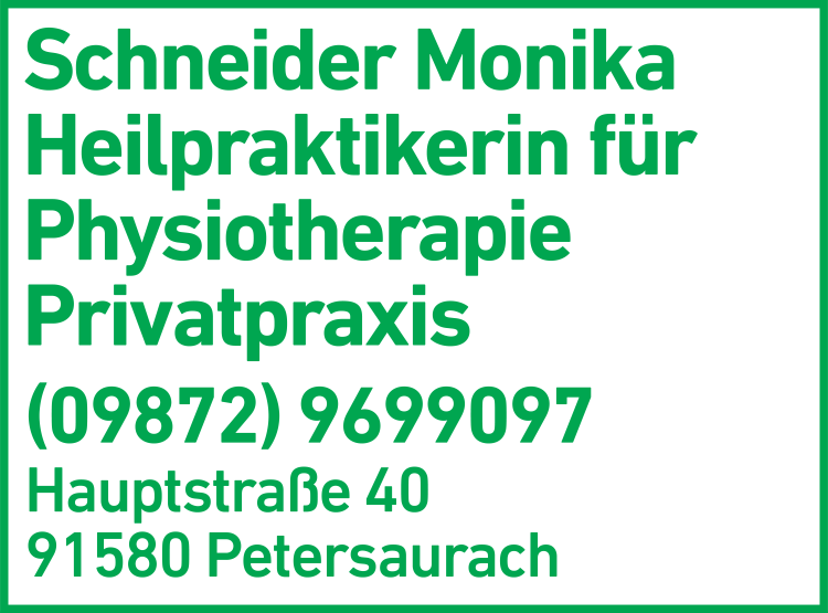 Die Adresse von Schneider Monika Heilpraktikerin, Massage lautet: Hauptstr. 40, 91580 Petersaurach