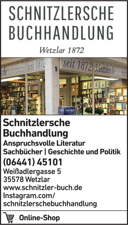Die Adresse von Schnitzlersche Buchhandlung lautet: Weißadlergasse 5, 35578 Wetzlar