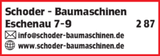 Die Adresse von Schoder Baumaschinen lautet: Eschenau 9, 87647 Unterthingau