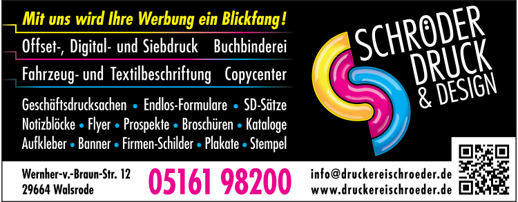 Schröder Druck & Design GmbH 05161 98 20-0 Walsrode Wernher-von-Braun-Str. 12 29664