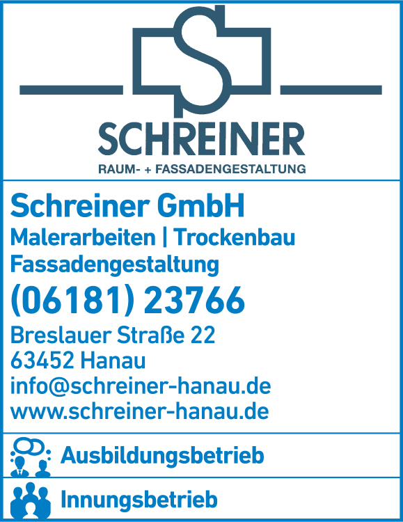 Die Adresse von Schreiner Raum- u. Fassadengestaltung GmbH lautet: Breslauer Str. 22, 63452 Hanau