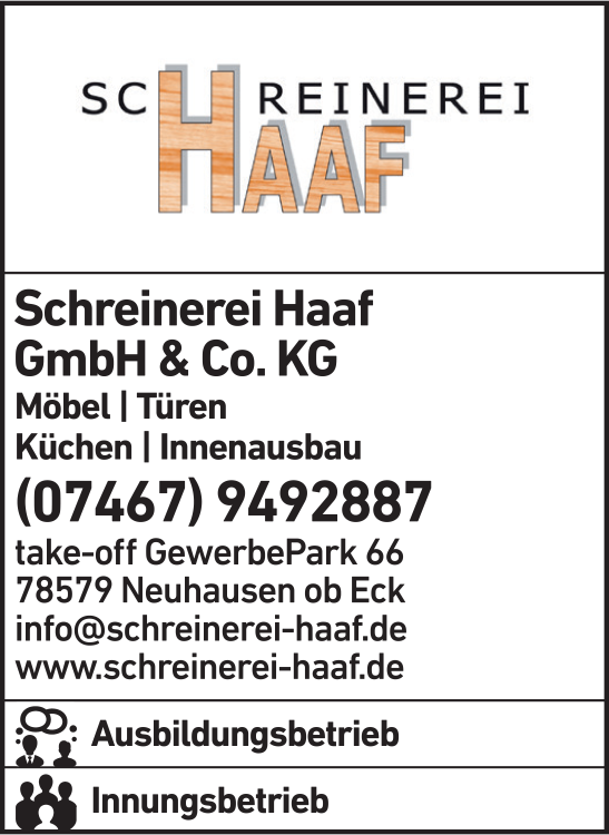 Die Adresse von Schreinerei Haaf GmbH & Co. KG lautet: take-off GewerbePark 66, 78579 Neuhausen
