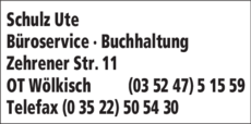 Schulz Ute 035247 5 15 59 Diera-Zehren Zehrener Str. 11 01665 Wölkisch