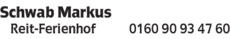 Schwab Markus bietet Ferienwohnung, Reiterhof, Reitunterricht, Nichtraucherwohnung, Ferien auf dem Bauernhof und Pensionspferde an.