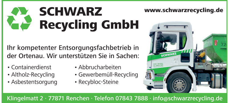 Die Adresse von Schwarz Franz Recycling und Containerdienst lautet: Klingelmatt 2, 77871 Renchen
