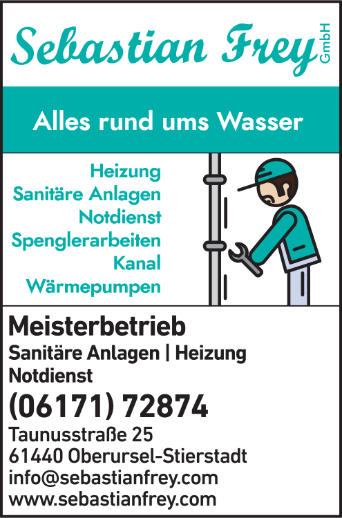 Sebastian Frey GmbH Heizung - Sanitär 06171 7 28 74 Oberursel (Taunus) Taunusstr. 25 61440 Stierstadt 1 5 1