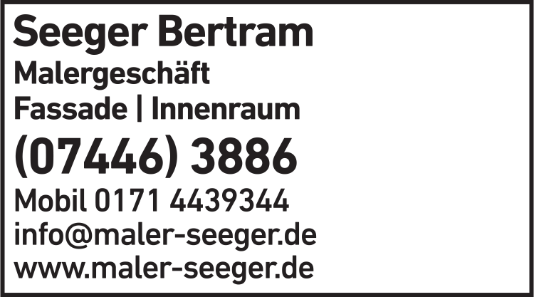 Wie lautet die Adresse von Seeger Bertram Malergeschäft?