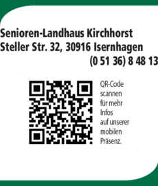 Die Adresse von Senioren-Landhaus Kirchhorst lautet: Steller Str. 32, 30916 Isernhagen