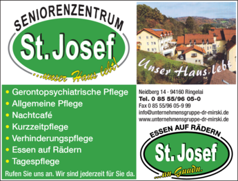Die Adresse von Seniorenzentrum St. Josef lautet: Neidberg 14, 94160 Ringelai
