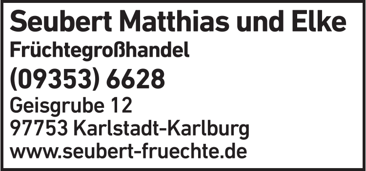 Seubert Matthias Früchtegroßhandel 09353 66 28 Karlstadt-Karlburg Geisgrube 12 97753 Karlburg