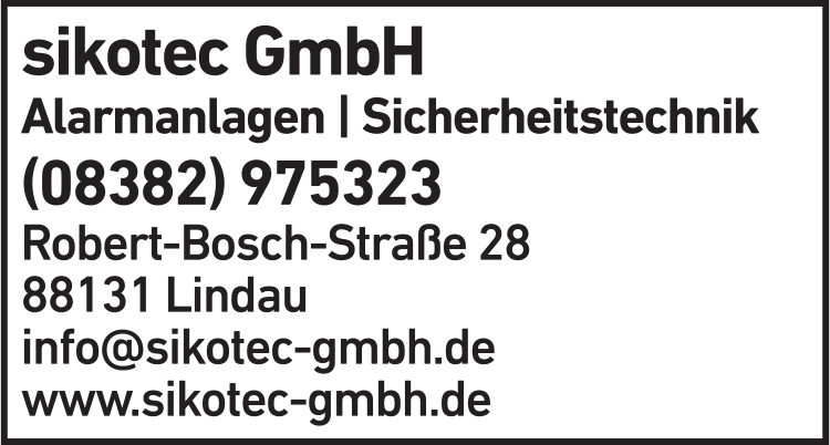 Die Adresse von Sikotec GmbH lautet: Robert-Bosch-Str. 28, 88131 Lindau