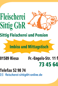 Die Adresse von Sittig lautet: Friedrich-Engels-Str. 11 f, 01589 Riesa