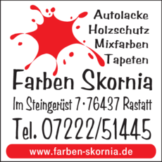 Die Adresse von Skornia Farben lautet: Im Steingerüst 7, 76437 Rastatt