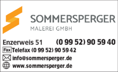 Die Adresse von Sommersperger Malerei GmbH lautet: Enzerweis 51, 94428 Eichendorf