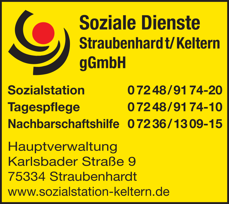 Die Adresse von Soziale Dienste Straubenhardt/Keltern gGmbH lautet: Karlsbader Str. 9, 75334 Straubenhardt