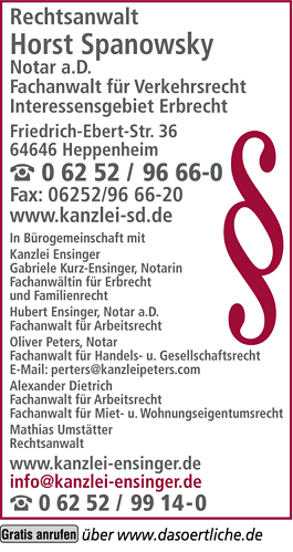 Die Adresse von Spanowsky lautet: Friedrich-Ebert-Str. 36, 64646 Heppenheim