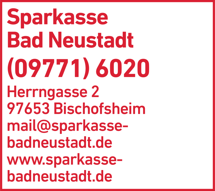 Die Adresse von Sparkasse Bad Neustadt lautet: Herrngasse 2, 97653 Bischofsheim
