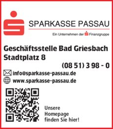 Die Adresse von Sparkasse Passau lautet: Stadtplatz 8, 94086 Bad Griesbach