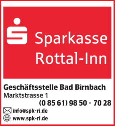 Die Adresse von Sparkasse Rottal-Inn lautet: Marktstr. 1, 84364 Bad Birnbach