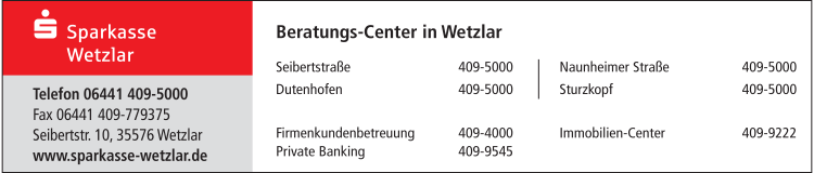 Sparkasse Wetzlar Beratungs-Center Sturzkopf-Dutenhofen 06441 4 09-5000 Wetzlar Volpertshäuser Str. 14 35578 de.teleauskunft.oetb.webapp2.detail.Graphic@6aface3