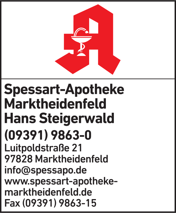 Die Adresse von Spessart Apotheke lautet: Luitpoldstr. 21, 97828 Marktheidenfeld