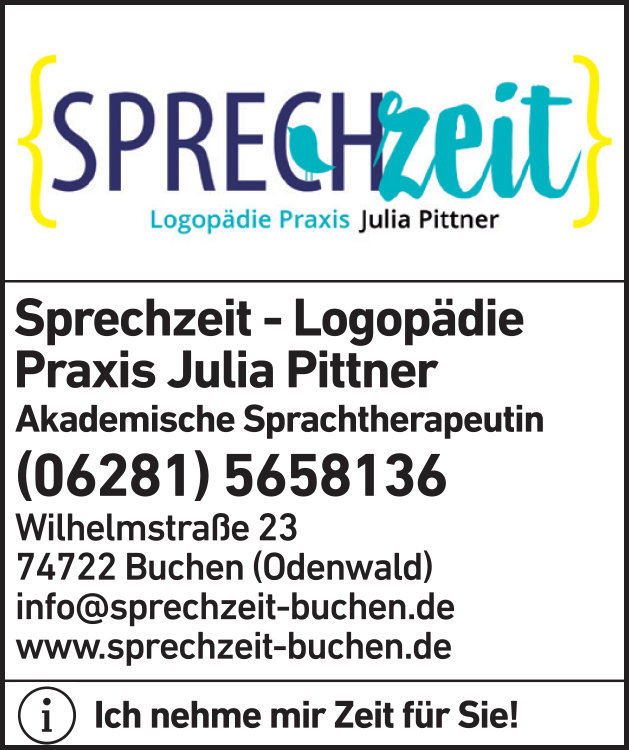 Die Adresse von Sprechzeit - Logopädie Praxis Julia Pittner lautet: Wilhelmstr. 23, 74722 Buchen