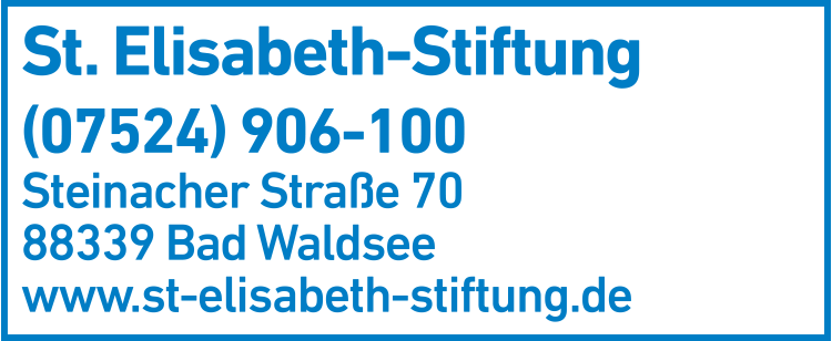 Die Adresse von St. Elisabeth-Stiftung lautet: Steinacher Str. 70, 88339 Bad Waldsee