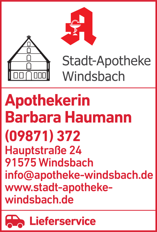 Die Adresse von Stadt-Apotheke lautet: Hauptstr. 24, 91575 Windsbach