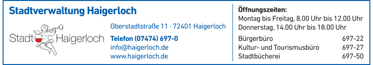 Wie sind die Öffnungszeiten von Stadt Haigerloch?