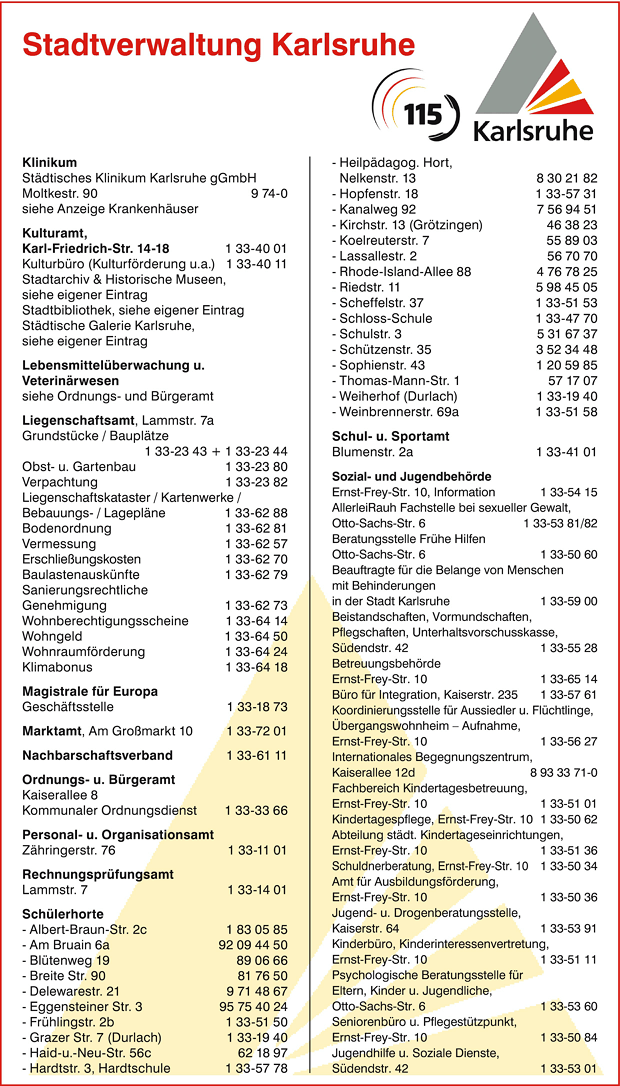 Die Adresse von Stadtverwaltung Seite 3 (K-S) lautet: Karl-Friedrich-Str. 10, 76133 Karlsruhe