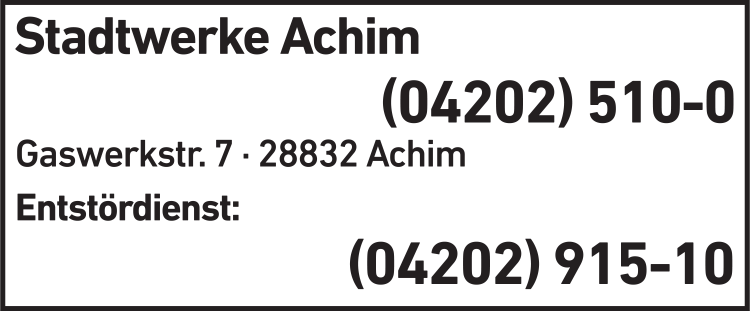 Die Adresse von Stadtwerke Achim lautet: Gaswerkstr. 7, 28832 Achim