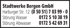 Stadtwerke Bergen GmbH bietet Störung Abwasser und Störung Wasser als Produkt(e) an