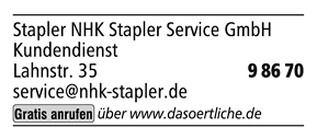 Die Adresse von Stapler NHK Stapler Service GmbH lautet: Lahnstr. 35, 64625 Bensheim