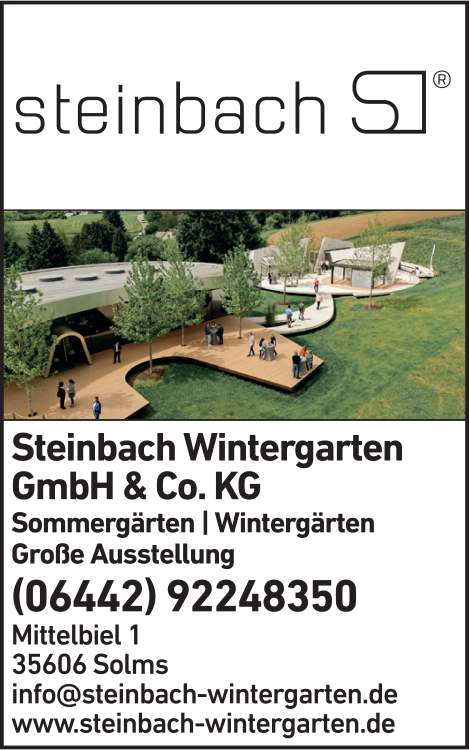 Die Adresse von Steinbach Wintergarten GmbH & Co. KG lautet: Lahnstr. 40, 35606 Solms