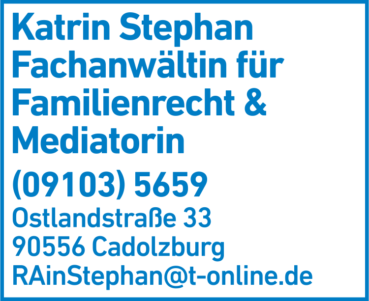 Stephan Katrin Rechtsanwältin Anwaltsbüro 09103 56 59 Cadolzburg Ostlandstr. 33 90556 5 5 1