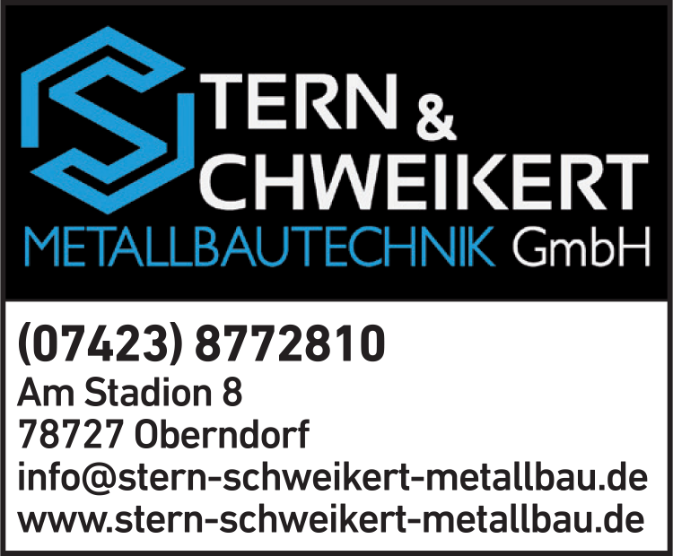 Die Adresse von Stern & Schweikert Metallbautechnik GmbH Schlosserei lautet: Am Stadion 8, 78727 Oberndorf