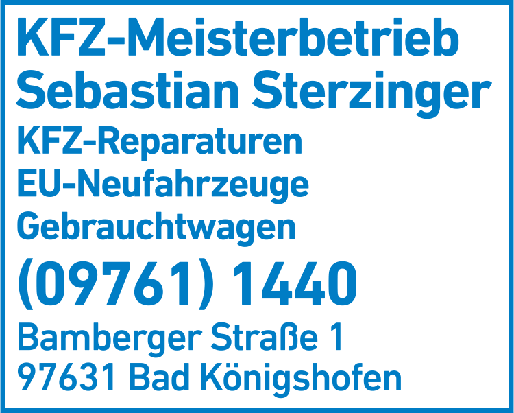 Sterzinger Sebastian Kfz-Meisterbetrieb 09761 14 40 Bad Königshofen i Grabfeld Bamberger Str. 1 97631