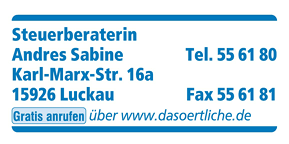 Die Adresse von Steuerberaterin Andres Sabine lautet: Karl-Marx-Str. 16 a, 15926 Luckau