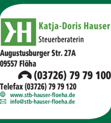 Sie suchen für Ihr Unternehmen einen zuverlässigen Steuerberater in Flöha? Vertrauen Sie auf die Kompetenz der Steuerberaterin Katja-Doris Hauser und vereinbaren Sie einen Termin, um vor Ort alles Weitere zu besprechen! Frau Hauser besticht in ihrer Arbeit durch Kontinuität und ein hohes Maß an Sachverstand. Die Steuerberaterin erstellt Jahresabschlüsse, ist für die Liquiditätsplanung in Unternehmen jeder Größenordnung verantwortlich und übernimmt auf Wunsch sogar die gesamte Lohnbuchhaltung für Sie und Ihren Betrieb. Weitere Arbeitsschwerpunkte der Kanzlei, die seit 1991 besteht, sind landwirtschaftliche Abschlüsse und betriebliche Prüfungen. Frau Hauser freut sich auf Ihren Anruf und ist fest davon überzeugt, Ihnen effektiv helfen zu können!