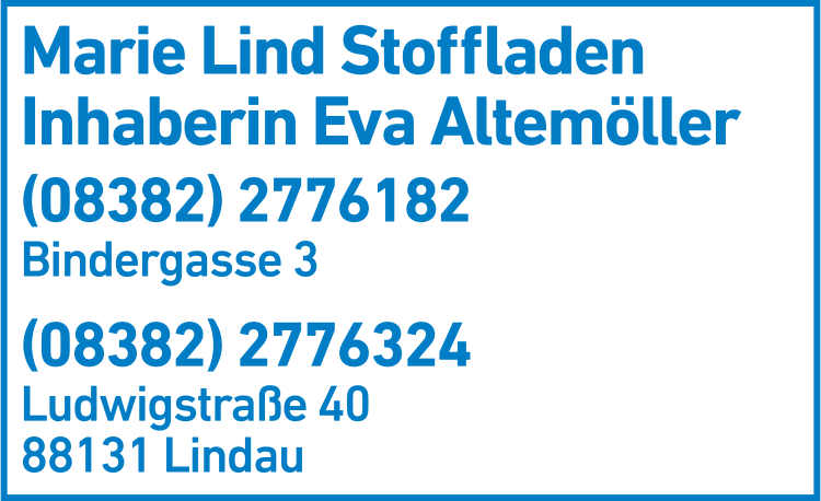 Die Adresse von Stoffladen Marie Lind lautet: Bindergasse 3, 88131 Lindau