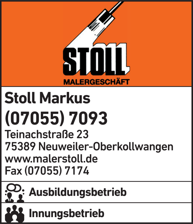 Die Adresse von Stoll Markus Malergeschäft lautet: Teinachstr. 23, 75389 Neuweiler